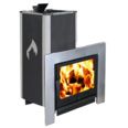 Дровяная банная печь-камин Березка Флагман 35 без особых трудностей наполнит влажным паром и жаром парилку объемом до 40 кубометров. Топка и корпус печи изготовлены из качественной конструкционной стали толщиной в термонагруженных местах до 8 мм. Печь оснащена навесным баком из нержавейки (поставляется вместе с печью), а дверца топливника имеет большой жаростойкий экран, который позволит любоваться живым огнем из комнаты отдыха. Также дверца оснащена надежным, герметичным механизмом запирания.