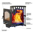 Чугунная печь для бани Везувий Легенда Ковка 16 270 рассчитана на парные объемом от 8 до 18 м3. Топка каменки состоит из трех частей, изготовленных из литого высококачественного чугуна. Части соединены болтами, в стыки проложен керамический шнур, выдерживающий температуру до 1200°С, поэтому топка абсолютно герметична и безопасна при эксплуатации. Толщина элементов топки составляет минимум 12 мм, поэтому печь способна выдержать большие перепады температуры и не лопается при попадании большого количества воды.