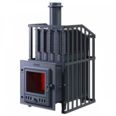 Печь для бани серии Гроза Ураган - расширенный комплект печи в сетке. Максимально приближенный вариант печи для режимов русской парной, имеющий непосредственно закрытую чугунным коробом каменку, дверцу для пара с ручкой из бука, увеличенную до 50см чугунную стартовую трубу.  Печь легко модернизируется до полноценной печи предназначенной для Русской бани путем замены стальной сетки на каменную облицовку без демонтажа дымохода. Модель Гроза Ураган выполнена на базе печей серии Гроза - экономичная модель для частного применения. Основной принцип работы печи сохранён – получение пара с теплоёмкой каменки прямого нагрева. Каменка является сводом топки, нагревается с нижней поверхности снабженной теплосъемными шипами для увеличения контакта с пламенем.Банная печь Гроза 18М Ураган с максимальным объемом парной 18 м3 и диаметром дымохода 115 мм можно купить в интернет-магазине Печи-Онлайн в Хабаровске с доставкой по всей России. Чтобы оформить заказ по выгодной цене 94300 руб. с гарантией оставьте заявку или позвоните нам по телефону 8 (800) 505-21-32 . Стоимость монтажа уточняйте у менеджера.