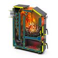 • Высокоэффективный процесс горения обеспечивается управляемой подачей воздуха и шахтной конструкцией котла