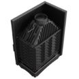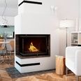 В распашную угловую дверцу слева вставлено Г-образное стекло из жаропрочной стеклокерамики Robax®, которое увеличивает обзор на игру пламени из-за отсутствия чугунной стойки. Каминная топка предназначена для установки в колонну, во внешний выступ перегородки или на специальный подиум.
