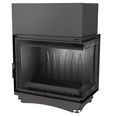 • Распашная угловая чугунная дверца с Г-образным жаропрочным стеклом Robax® поверх рамы;