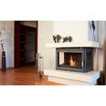 В распашную дверцу, а также в стенки слева и справа вставлены стёкла из жаропрочной стеклокерамики, через которые можно любоваться игрой живого пламени и следить за сгоранием дров. Каминная топка предназначена для установки в колонну или внешний выступ перегородки.