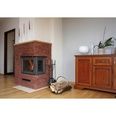 Каминная топка Kratki Maja/P (стекло справа) изготовлена из литого чугуна, толщиной 8 мм, внешние стенки усилены ребрами, которые увеличивают теплонакопление топки и вместе с тем снимают излишки термической нагрузки на стенки топки. Дымосборник сделан в форме высокого конуса для накапливания газов в его верхней части, из-за этого у топки КПД меньше, но в помещение попадает на 80% меньше дыма, когда открывается дверца