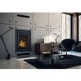 В высокую распашную дверцу вставлено стекло из жаропрочной стеклокерамики, через которое можно любоваться игрой живого пламени и следить за сгоранием дров.