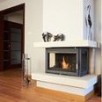 В широкую распашную дверцу, а также в стенки слева и справа вставлены стёкла из жаропрочной стеклокерамики Robax®, через которые можно любоваться игрой живого пламени и следить за сгоранием дров. Каминная топка предназначена для установки в колонну, во внешний выступ перегородки или на специальный подиум.