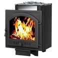 • Объемная вентилируемая каменка вмещает до 60 кг банного камня и нагревает его до 400 °С. При попадании воды генерируется большое количество мелкодисперсного лёгкого пара.